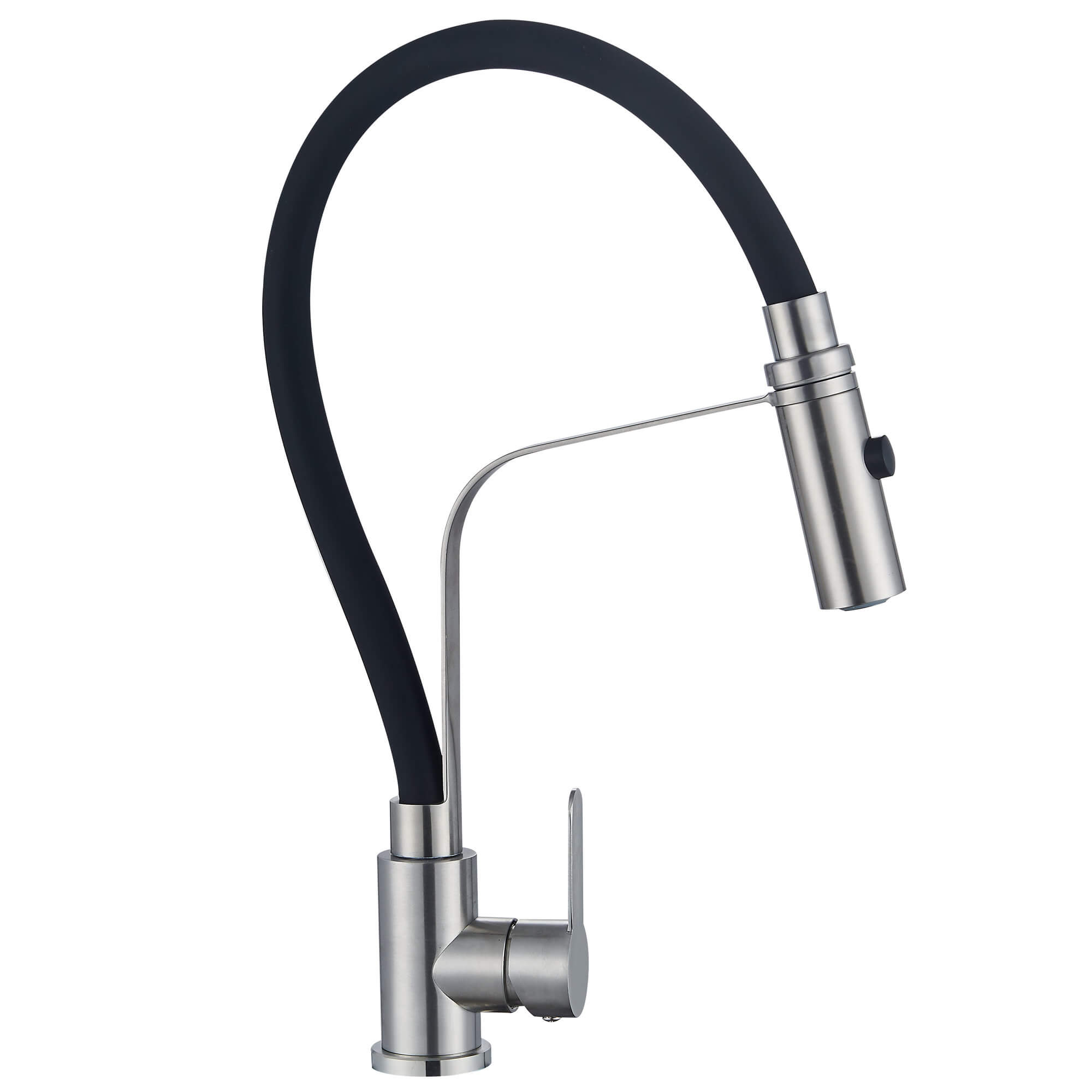 Смеситель для кухни Ligeya S3029 одноручный с гибким черным изливом, 2-х режим. лейка, нерж.
